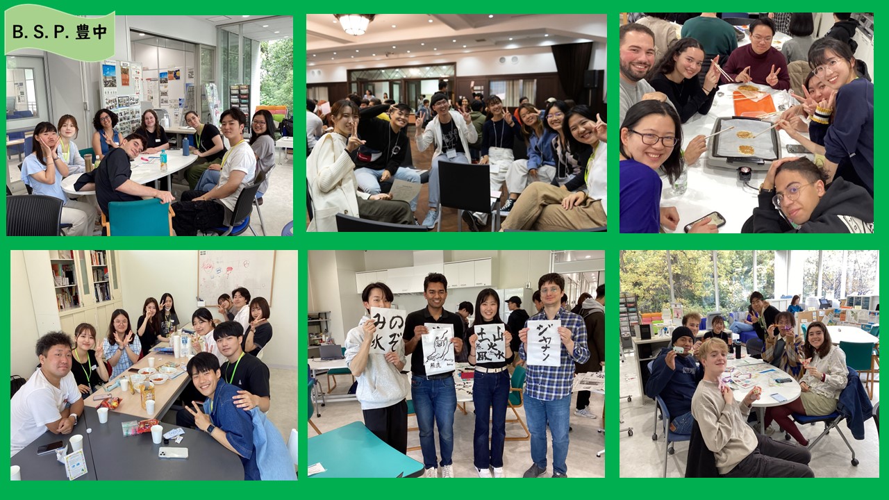 B.S.P.は、国際教育交流センターと協力して、大阪大学の日本人等一般学生と留学生の交流を推進するために活動しています。ウェルカムパーティー、日本語カフェ、遠足など、日常生活に根付いた様々なイベントを開催し、みなさんがたくさんの人と知り合う機会を提供しています。大阪大学の学生であれば、誰でもイベントに参加できます。国際交流や世界の文化に興味のある方、気軽に参加してください。日本人など一般学生も留学生もぜひどうぞ!!(この学生団体の活動に参加することで、異文化理解力やコミュニケーションスキル、チームワーク能力等が培われることが期待されます)